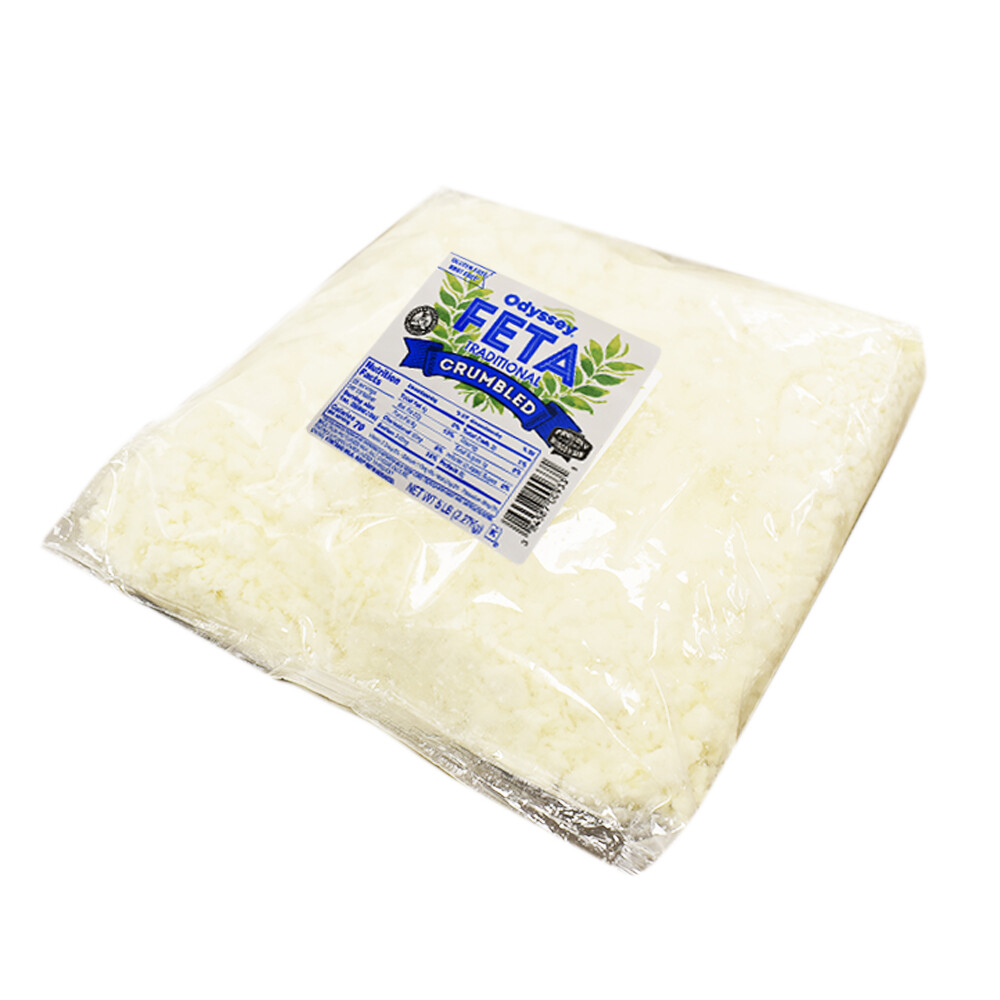 El queso clásico de Grecia Feta Odyssey es simplemente delicioso. En esta edición se entrega en bolsa y desmigado. El queso feta es muy blanco de forma natural, blando pero con consistencia compacta, presentando pequeños agujeros y algunas grietas.